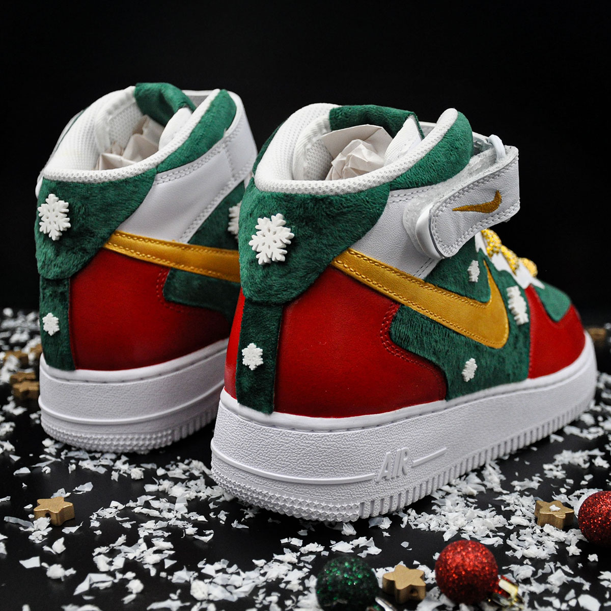 Z dumą prezentujemy Air Force 1 „Christmas Edition 2” WMNS! Ten custom to hołd złożony najpiękniejszemu okresowi w roku – odzwierciedlenie choinki, bombek i świątecznego blasku. To idealny prezent (lub idealne uzupełnienie Twojej kolekcji) na zimowe miesiące.